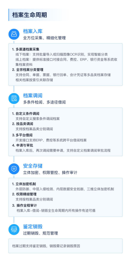 作为一套全新档案管理方案,汇联易“E档案”具有以下优势: