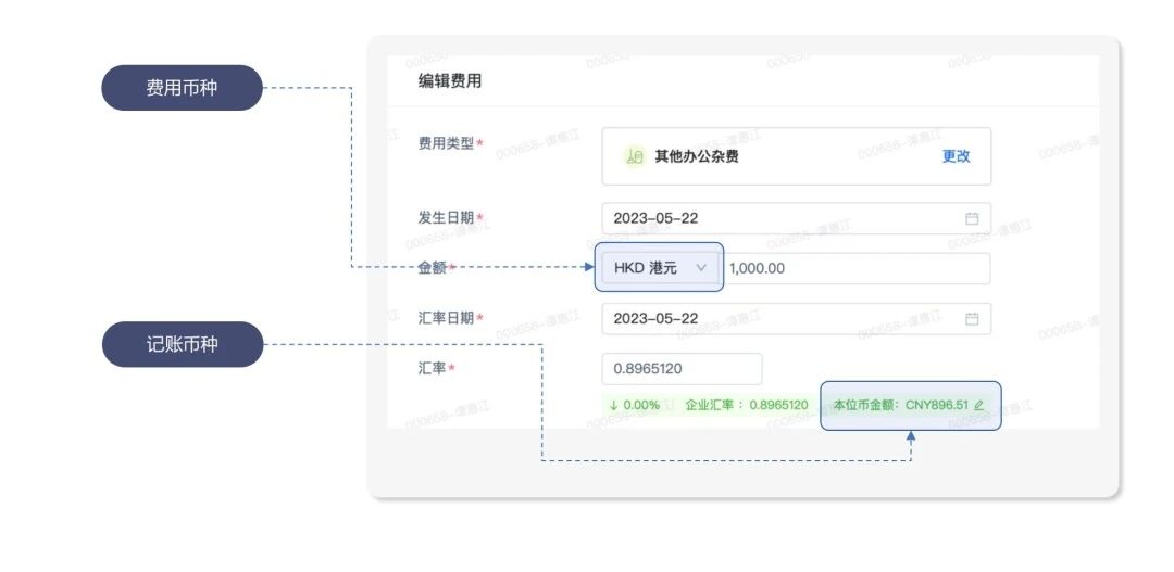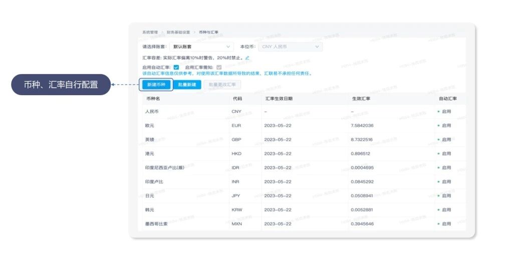 系统还支持在不同应用场景自定义币种设置,满足实际业务场景的费用管控需求。