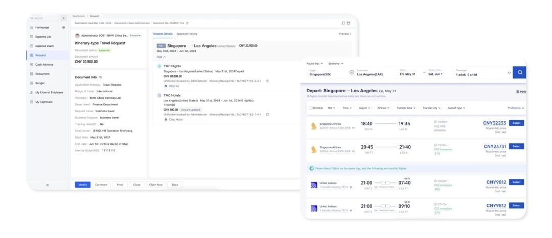 汇联易自营的甄选消费平台可以实现一站式的海外差旅场景,支持预订海外机票酒店用车等。也可以链接携程海外(Trip.biz)等专业的海外消费商。