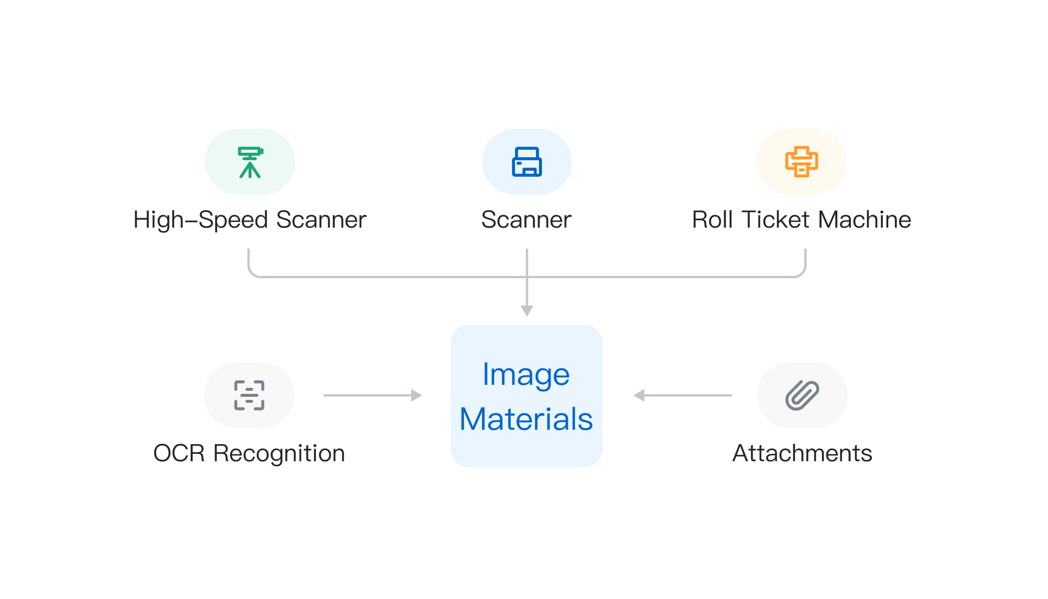 结合 OCR 技术,对银行回单、发票、通用模板等多种影像资料进行识别,提升管理效率