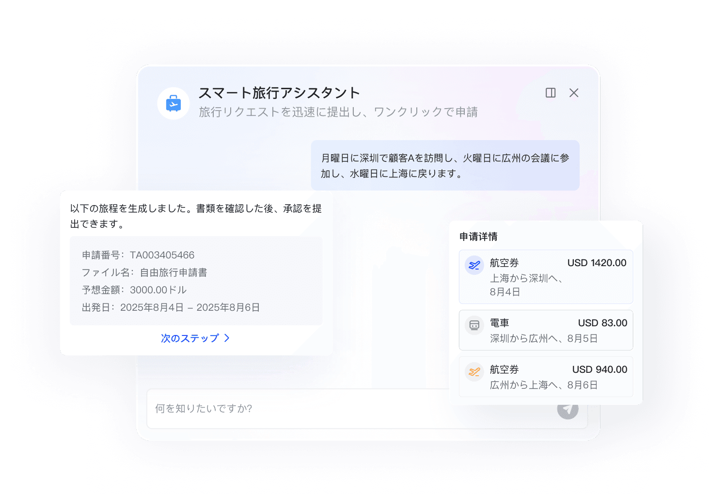 通过简单对话的方式就能预订行程、创建单据并获取答案,费用相关任务的处理比以往更加快捷简便